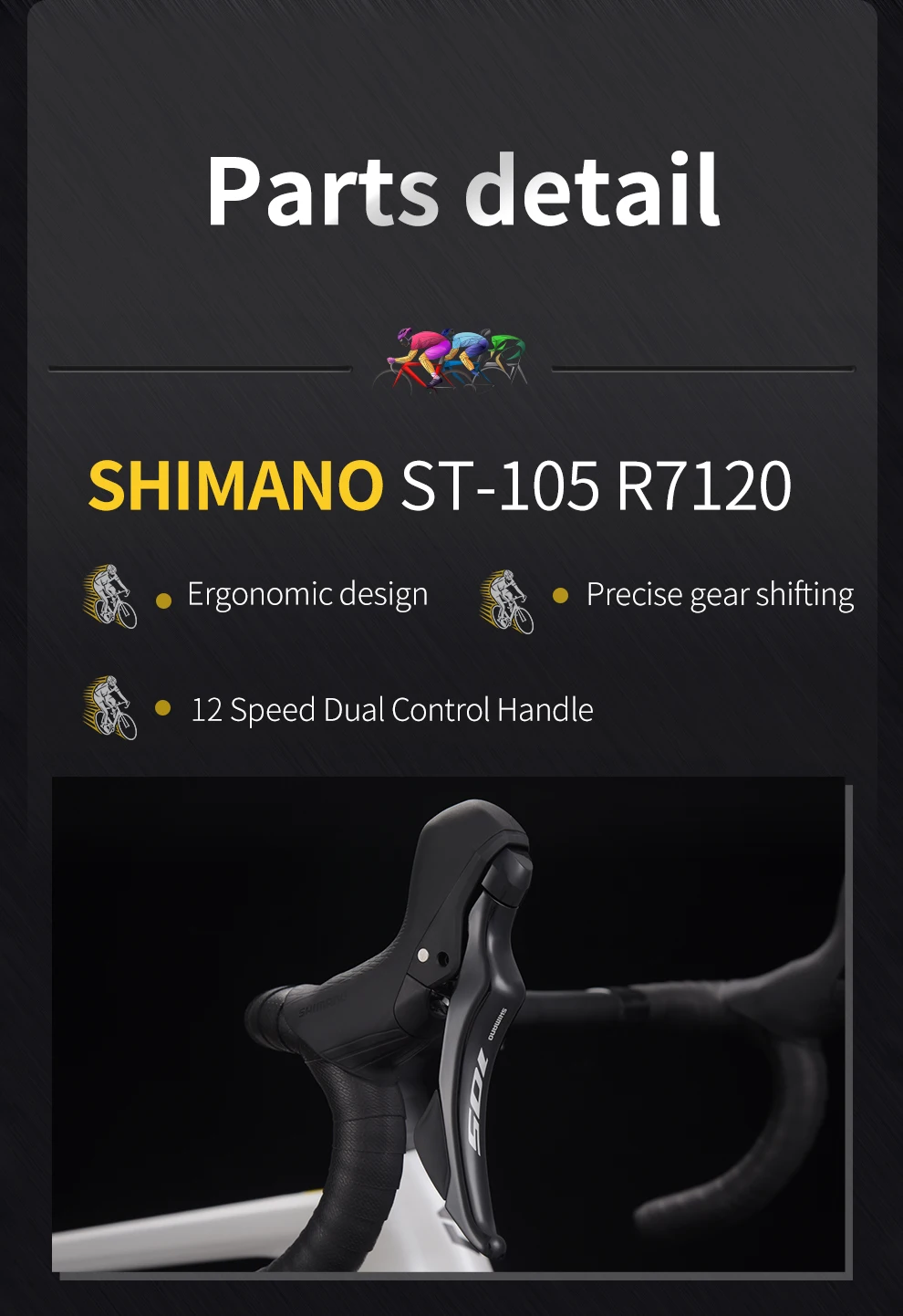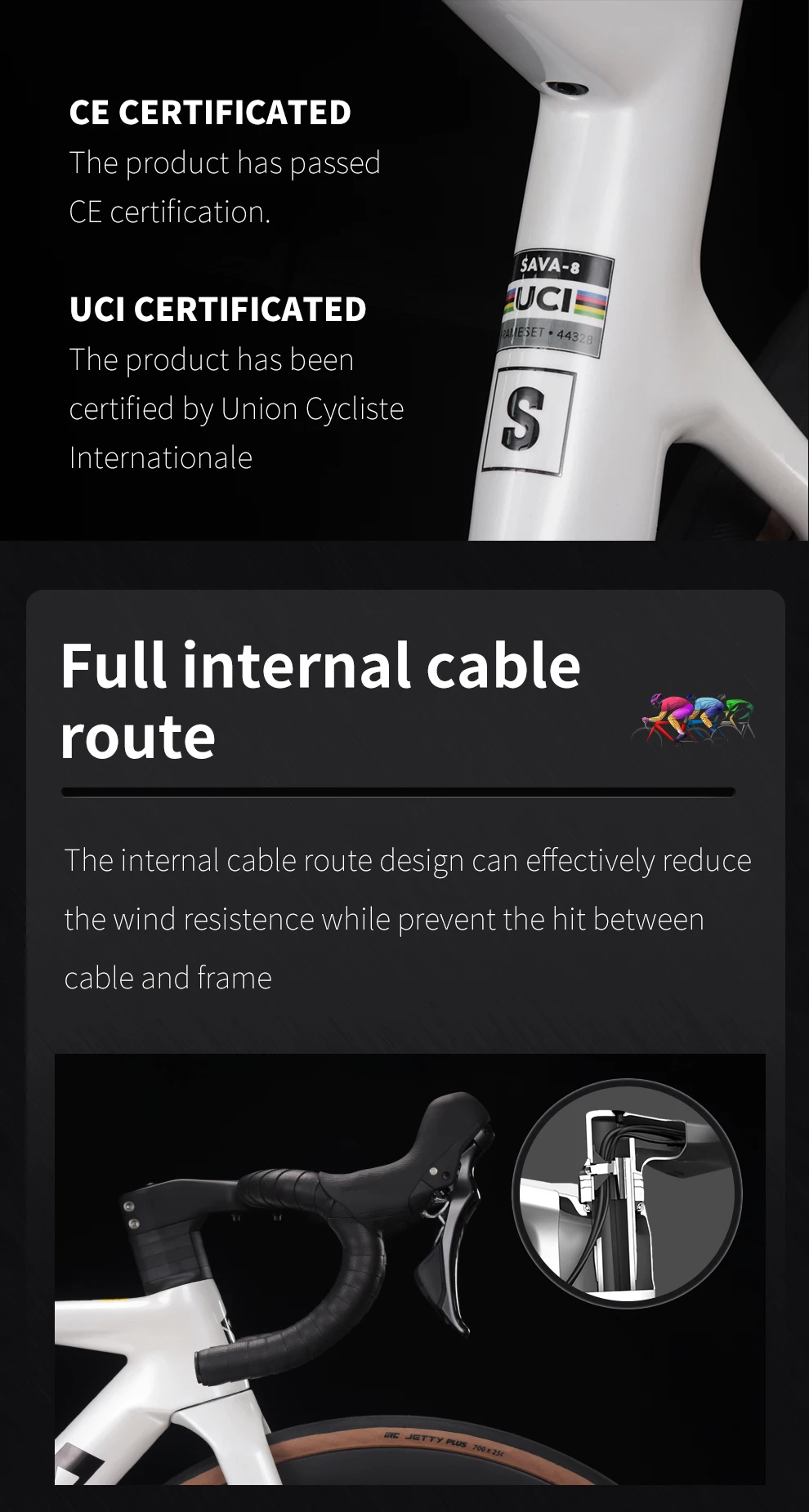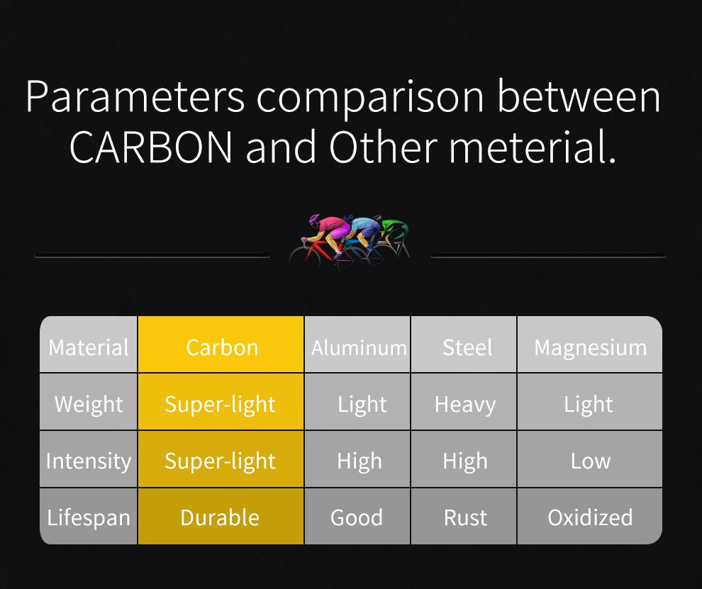 Handlebar: T800 Carbon fiber, 400mm x 31.8 mm